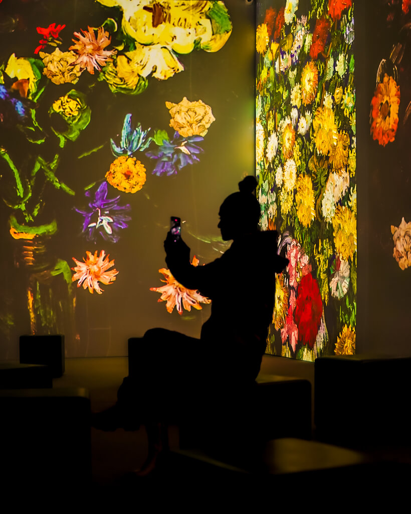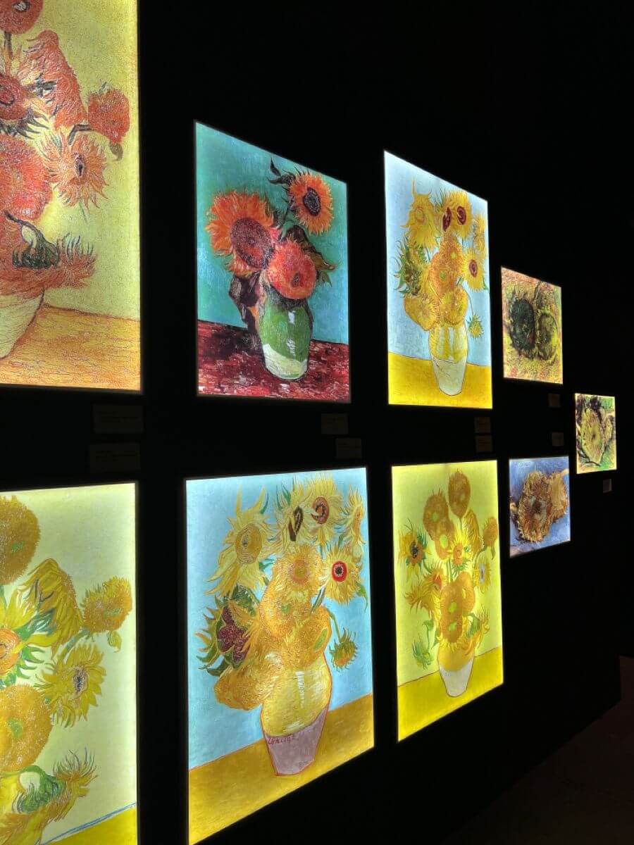 Понад 3000 анімованих зображень, 360° цифрові проекції та спеціально підібрана музика створюють атмосферу повного занурення. Поєднання мистецтва та технологій дозволяє по-новому відкрити шедеври «Зоряна ніч», «Соняшники» та «Тераса кафе вночі».